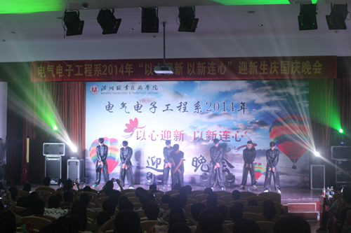 九月属于每一位刚来到大学校园的学子,也是青春飞舞的时节,为了进一步丰富校园文化生活,展示电气系学子的青春力量,2014年9月26日晚6时,电气电子工程系迎新晚会在学院树人堂隆重举行,系党总支书记晁拥军、系主任苏绍兴、各新生班主任、系全体辅导员与全系400余名新生共聚一堂。
