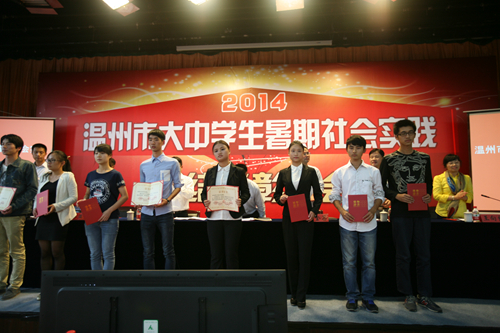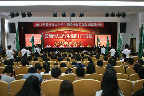 10月31日下午,2014年温州市大中学生暑期社会实践总结表彰大会在我院树人堂隆重举行。来自各高校、县(市、区)和市直学校的师生代表近600人参加表彰大会。市委常委、副市长陈浩出席大会并讲话,温州职业技术学院院长丁金昌、团市委书记王忠宝、市文明办副主任丁柏强、市教育局党委委员、纪检组长蔡亚里、温州职业技术学院副院长王向红出席会议,会议由团市委副书记沈醒主持。
