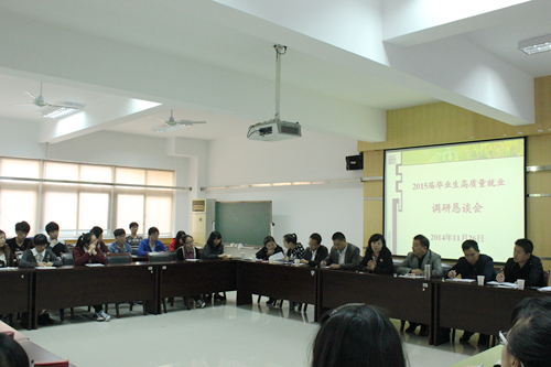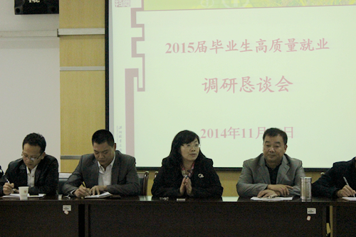 在座谈会最后,王院长做会议总结讲话。她鼓励同学树立信心,展示自我,宣传学院。要相信学院的影响力,要相信学院的人才培养质量和相信自身的综合能力。她要求学院职能部门、系部和同学们在毕业生就业工作中要加强沟通联系,采取有效措施,为同学们找到满意的工作共同努力。