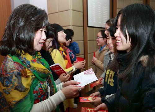 捐赠仪式上,人文传播系郑国波书记总结和回顾了“金瓯工程”走过的十二年光辉历程,充分肯定捐资助学所取得良好的社会影响,并对女企业家的慷慨资助表示欢迎和感谢,鼓励同学秉承“大爱人文,心怀感恩”的校园文化,把“爱”与“感恩”为核心理念的“金瓯工程”精神传承下去,不断提高抗挫折能力,茁壮成长。学院王向红副院长、叶吉波处长给各女企业家颁发了荣誉证书,王向红副院长希望受资助同学珍惜社会给予的关怀,感恩爱心人士的奉献,全身心投入到今后的学习工作中去。受资助的学生代表胡温琼同学表示要心怀感恩之情,好好学习回报社会。她们还亲身制作了精美的卡片送给女企业家表达感激之情,女企业家们与同学们亲密交谈,对同学们的学业和生活极为关心。