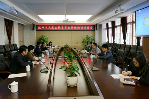 张雷副主任首先介绍调研主题,在温州市政府提出“五化”战略、“十三五”发展规划的背景下,此次调研主要围绕“五化”战略重点开展合作对接研究。