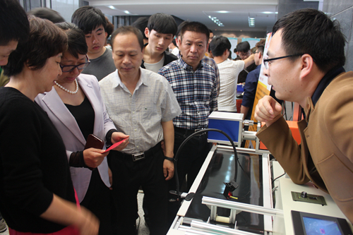 温职院副院长王向红、王志梅现场观看了机械学子的毕业设计作品后,很是高兴。在学院领导看来工科类制作的实物毕业作品最有意思,最能把大学三年学到的综合能力淋漓尽致地体现出来。温职电视台的工作人员看到这些让全场都能“动起来”的把作品也是惊喜连连,全程录制了每件实物作品,并进行了一一采访,了解了每件产品的设计与制造过程。