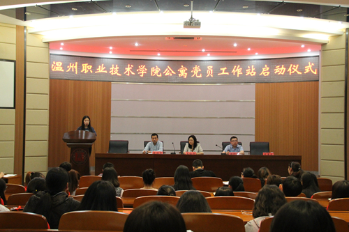 启动仪式在庄严的国歌声中拉开帷幕。首先,学工部部长叶吉波介绍学生公寓党员工作站的实施办法。接着,组织部部长徐利群为学生公寓党员工作站授牌,总支书记陈维彬为七个分站站长颁发了聘书。随后,学生公寓党员代表张冲冲同学在仪式上做了发言,并代表全体学生党员表态,在今后的学习、生活、工作中,将充分发挥学生党员在学生公寓管理和公寓文化建设中的先锋模范作用,从自身做起,积极带动周围同学在实践中“履行宗旨、锻炼党性、提高修养”。最后,王向红副院长作了重要讲话。她指出,学生公寓是我院育人的重要阵地,要积极推进党组织进公寓,以党员工作站为抓手,以改革创新的精神,积极实施“党建进学生公寓工程”,初步形成了“一个工作站,四个阵地,一种身份,五个角色”的党建进学生公寓新模式,切实加强学生党建和思想政治教育工作。