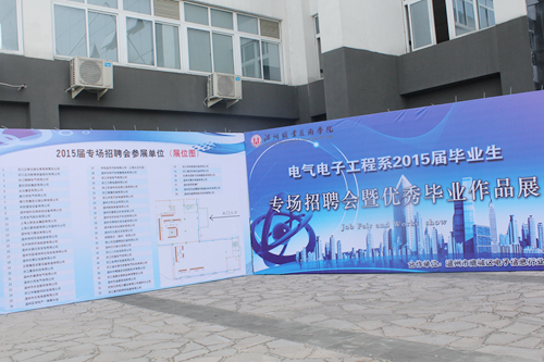 5月7号下午,在温州职业技术学院研发大楼举行了电气电子工程系2015届毕业生专场招聘会暨优秀毕业作品展,本次活动由温州市鹿城区电子信息行业协会联合举办。
