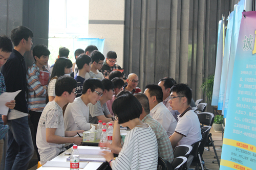 在招聘现场,毕业生们跟企业热情交流,面对企业提出的问题,毕业生们对答如流,信心满满,向企业展示了温州职业技术学院学生的良好素质和水平。