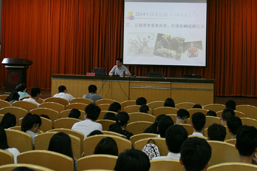 培训课上,陈光天书记作了2014-2015形势分析报告。并希望同学们现在不能志得意满,放松对自己的要求;反而要更加严格地要求自己;要“百尺竿头更进一步”;成为明荣辱、知是非、辨美丑、高素质的优秀人才。同时,陈书记要求同学们做到自觉践行社会主义核心价值观,要富有人文精神,要有较高的专业素养,要有健全的人格,并衷心地祝愿同学们,学习进步、身体健康,早日成为一名光荣的共产党员!
