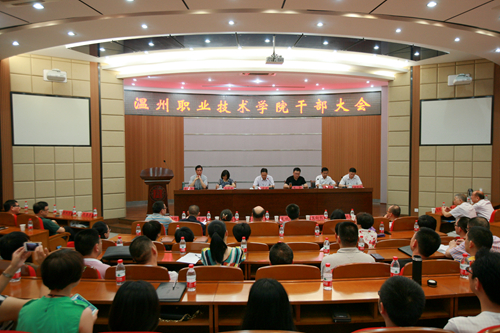 汪晓村副书记在会上做了重要讲话。他指出,这次温州职业技术学院院长的调整是省委省政府从全省高校领导班子建设大局与温职院的事业发展实际出发,充分听取多方意见,经过通盘考虑、审慎研究以后作出的决定。他充分肯定了我院近年来的快速发展,特别是丁金昌同志在任职期间所作出的重要贡献。他强调,省委认为由谢志远同志担任温州职业技术学院院长是合适的,他希望全校干部、教师以实际行动积极配合、大力支持谢志远同志开展工作;也希望谢志远同志尽快熟悉学院情况,紧紧依靠全院师生员工,改革创新、共谋发展,推动学校各项事业迈上新的台阶,不辜负组织与同志们的重托。同时,汪晓村对我院建设与发展提出了三点要求:一是把握高等教育新形势新要求,精心谋划学院新一轮发展;二是认真开展“三严三实”专题教育,加强领导班子自身建设;三是要推进现代大学制度建设,进一步完善内部管理体制机制。