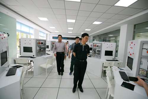参观过程中,谢志远院长向葛书记一行介绍了学院的总体情况、办学特点、办学理念、实训设施,并得到来访领导们的肯定。