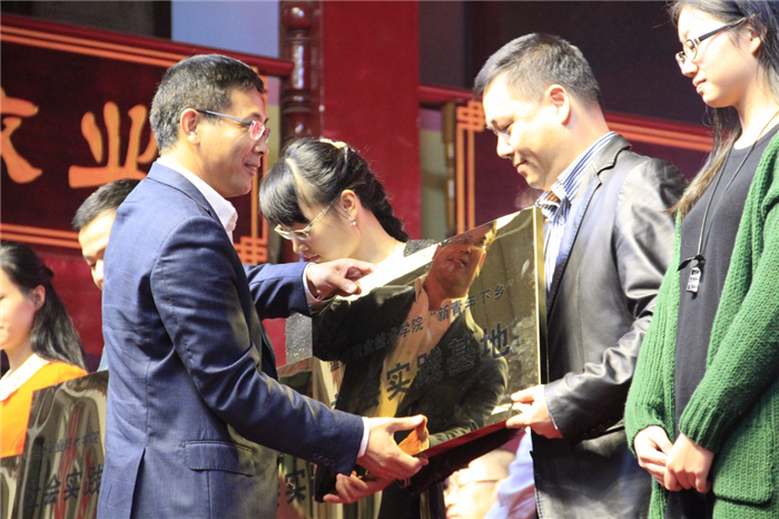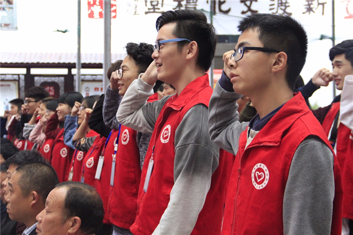 会议期间,还举行了苍南县委书记黄寿龙为我院“新青年下乡”团队代表授旗、王靖高书记为各乡镇代表授牌、温职院全体学生代表宣誓等一系列仪式。会后,我院学生为村民奉献了一台简短却不乏精彩的文艺演出。