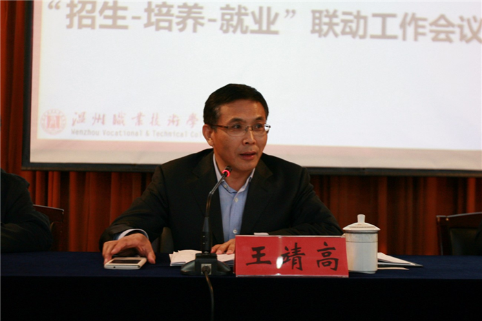 党委书记王靖高结合学院工作实际作了重要讲话:一要统一思想,深刻认识联动改革的重要性。人才培养是高校中心工作,招生就业则是对人才培养质量的检验,三者是一个有机整体,因此必须整体统筹、合力推进。二要审时度势,清醒认识联动改革的紧迫性。当前我们面临的形势不容乐观,面对校际之间的竞争之势、本科院校转型为应用型大学的压顶之势,必须敲起警钟,赶超发展,化压力为动力,激发活力,有所作为,以有为换有位。三要对症下药,切实突出联动改革的针对性。要通过明确目标、思想重视、全员参与、加大宣传、建立机制、加强考核等举措,落实各处室、系部的责任制。四要再创优势,努力突出高职办学的示范性。希望学院以“招生-培养-就业”联动改革为契机,在服务面向上做“服务地方”的示范,在人才培养上做“全面育人”的示范,在教师队伍建设上做“潜心教学”的示范,从试点到示范,从示范到模范,争创全国一流高职院校,争做全国示范院校的模范生!