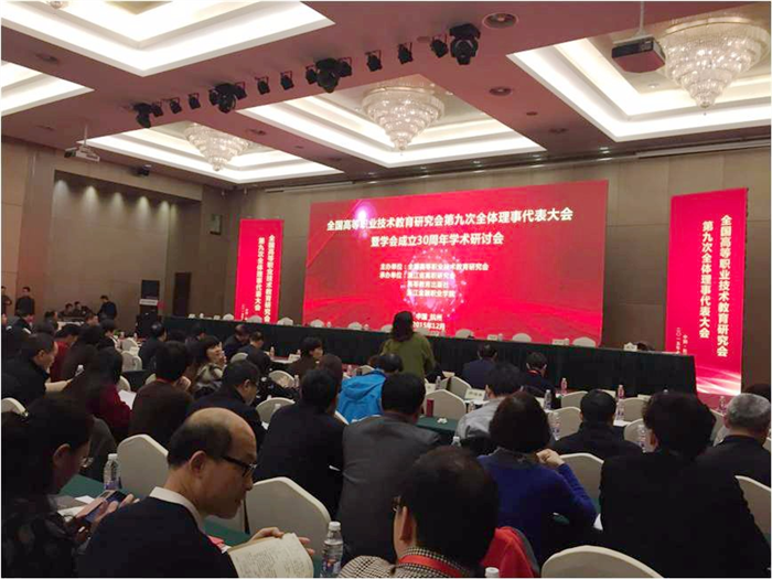 12月11 号上午,全国高等职业技术教育研究会第九次全体理事大会暨学会成立30周年学术研讨会在杭州召开。我院当选为中国高等职业教育研究会第九届理事会常务理事单位,谢志远院长为常务理事。我院公共教学部王新成副教授获第八届研究会高职教育优秀理论研究奖并受表彰奖励。