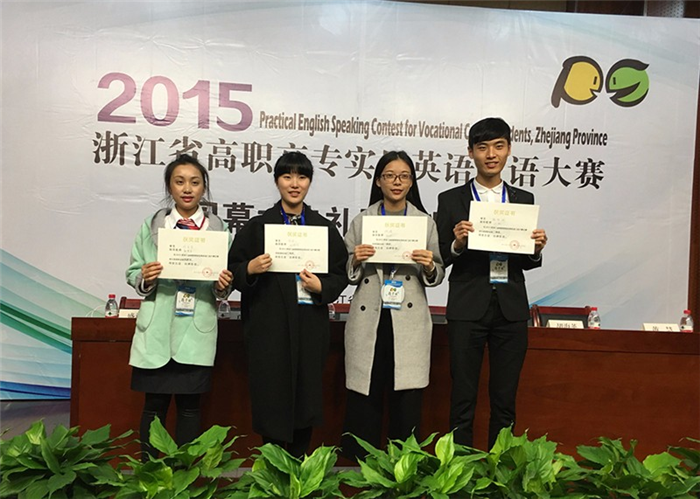 12月9日至11日,省高职高专实用英语口语大赛浙江省赛区选拔赛在杭州旅游职业技术学院举行。我院代表队选手在人文传播系张妍、江帆、尤晓洁和颜碧宇老师的悉心指导下,在比赛中发挥出色,脱颖而出,斩获佳绩。其中,人文传播系商务英语专业陈瑶和周瑶瑶同学分别荣获专业组一等奖和三等奖,建筑工程系倪陈斌同学荣获非专业组二等奖,工商管理系陈苗苗同学获得非专业组优胜奖。