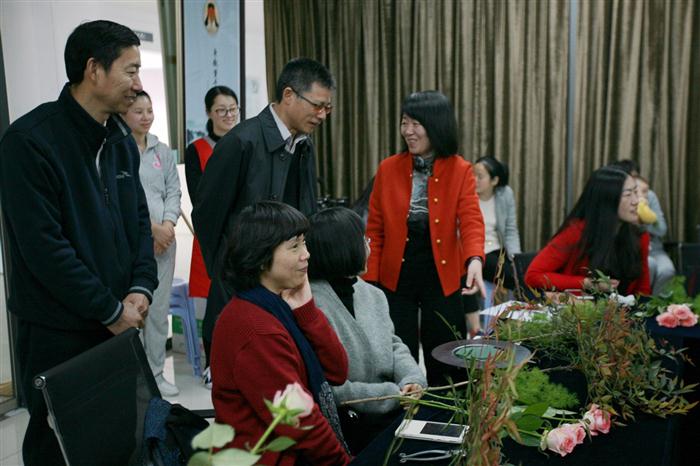 为了迎接“三.八”国际劳动妇女节,学院工会女工委特组织花道美学体验活动,活动吸引了近150名女教职工的踊跃报名,分三组进行,3月4日下午,在教师发展中心606组织了第一组花道美学体验活动,学院党委副书记夏晓军亲临现场观摩。