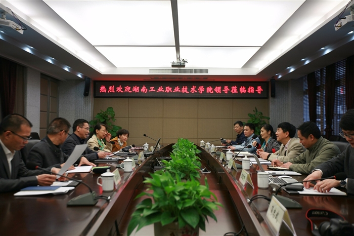 3月23日下午,湖南工业职业技术学院党委书记熊琦一行来访我院考察交流。我院党委书记王靖高、副院长王志梅热情接待了熊书记一行,一同参观了我院校内实训基地、图书馆、技术研创大楼,并召开座谈会。