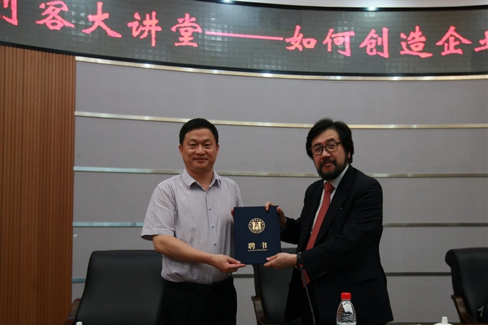 6月14日上午,为了深入探讨“新常态”下创新设计与品牌建设对转型升级的重要意义,加快推进企业自主品牌建设,增强现代企业市场竞争力,着力建设以企业为主体的创新体系,温州创客大讲堂讲座“如何创造企业自主品牌”在我院正德楼罗山厅举行。此次讲座特别邀请到日本格拉慕可集团总裁山田敦郎先生作专题演讲。我院院长谢志远致欢迎辞并颁发聘书,聘请山田敦郎先生为我院客座教授。此次大讲堂由时尚设计系施凯主任主持。