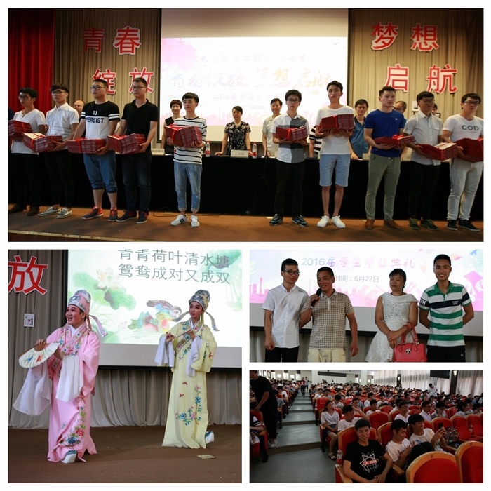 2016年6月22日下午,我院电气电子工程系2016届学生毕业典礼在明德楼树人堂隆重举行,电气电子工程系406名毕业生正式和自己的大学生涯挥手告别。学院副院长王志梅、电气电子工程系主任苏绍兴、系党总支书记晁拥军等领导,13级各班班主任教师出席了典礼。典礼仪式由苏绍兴主持。