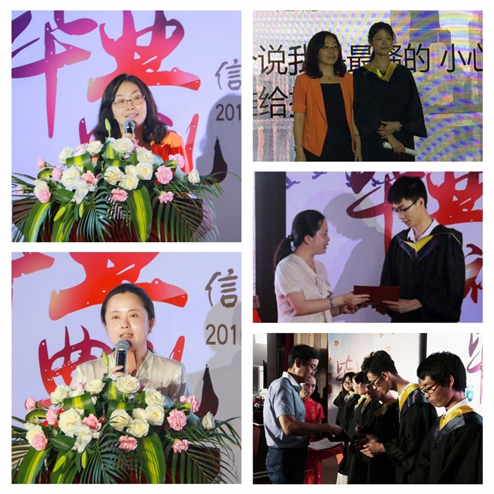 典礼在庄重的国歌声中拉开序幕。林天峰书记宣读了优秀毕业生表彰决定,院系领导分别为省和院系级优秀毕业生颁发荣誉证书。毕业生代表、在校生代表分别上台发言。