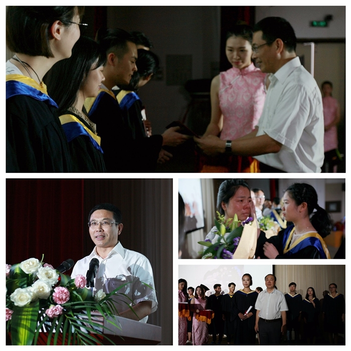 典礼在庄重的国歌声中拉开序幕。主持人宣读了优秀毕业生表彰决定,院系领导分别为省和院系级优秀毕业生颁发荣誉证书。教师代表、在校生代表通过视频的方式对即将毕业的学子们送上祝福和嘱托。