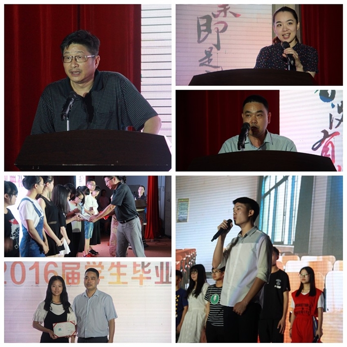 典礼在庄重的国歌声中拉开序幕。简家进副主任宣读了优秀毕业生表彰决定,院系领导分别为省和院系级优秀毕业生颁发荣誉证书。教师代表、在校生代表上台发表感言,对即将毕业的学子们送上祝福和嘱托。