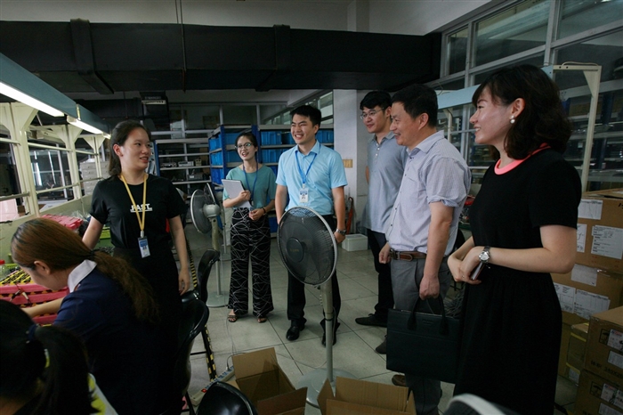 谢志远院长、王向红副院长走访过程中参观了申瓯公司产品展示厅、生产车间以及办公区域,并与分布在各个岗位上的实践队师生进行了交流。谢院长亲切地询问了师生们的实践情况以及收获心得,对实践队师生踏踏实实工作,短时间迅速融入企业、进入角色,为企业贡献价值表示赞叹。