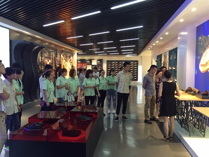 会后,夏书记一行和实践队员们在康奈集团领导的陪同下,一起参观了康奈集团的展厅、车间和俱乐部,并合影留念。
