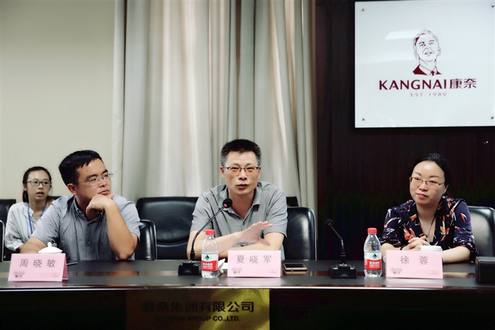 在康奈行政楼三楼2号会议室,康奈集团人力资源部任培广经理主持会议。带队老师陈海琳对2016年康奈暑期实践队的近两周的实习情况和做了全面介绍,实践队代表林婷婷、谷鹏鹏同学就实践中的感受和收获和大家进行了分享。