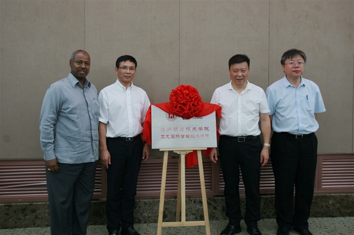 论坛上,举行了温州职业技术学院—亚龙国际智能技术学院战略合作揭牌仪式。我院党委书记王靖高与浙江亚龙教育装备研究院院长陈继权揭牌。