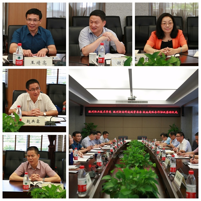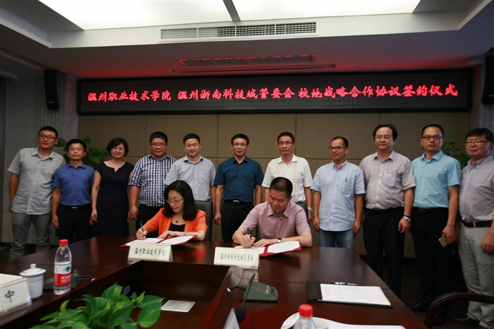 7月26日上午,温州职业技术学院—浙南科技城校地战略合作签约仪式在我院举行。我院党委书记王靖高、院长谢志远、副院长王向红,温州浙南科技城管委会主任赵典霖及相关职能部门和科研平台负责人出席了仪式,王向红副院长主持会议。