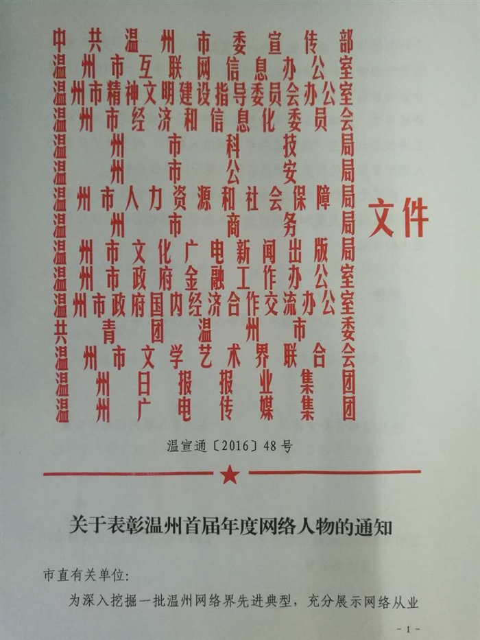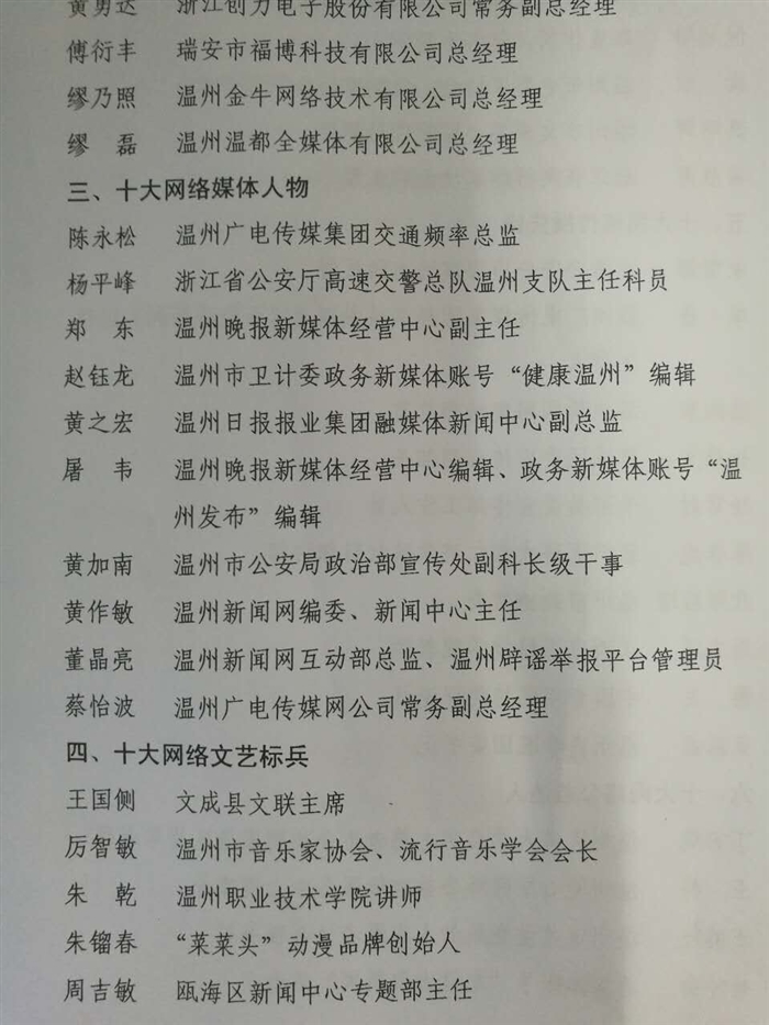 在成立大会上还表彰了温州首届年度网络人物。我院人文系教师朱乾获得“十大网络文艺标兵”称号。