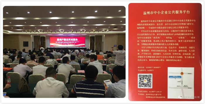 温职院是全省首家运营“中小企业公共服务平台”的高校,服务平台设在成教学院内。在本次产融合作对接会筹备过程中,平台人员积极协助温州市经信委中小企业处,全程参与“温州产融合作对接会”的各项会务工作,前后历时一个多月,先后配合主办方发动银行、投资机构,遴选参会企业,整理会议资料,平台微信起到了很好的宣传作用。