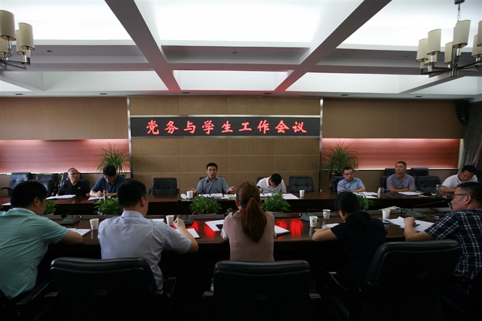 9月29日上午,我院在正德楼三楼会议室召开新学期党务与学生工作会议。党委书记王靖高、党委副书记夏晓军、纪委书记何忠、党委委员徐利群、党委委员蔡后界出席会议。学院相关部门负责人、各党总支(直属支部)书记等参加会议。会议由党委副书记夏晓军主持。