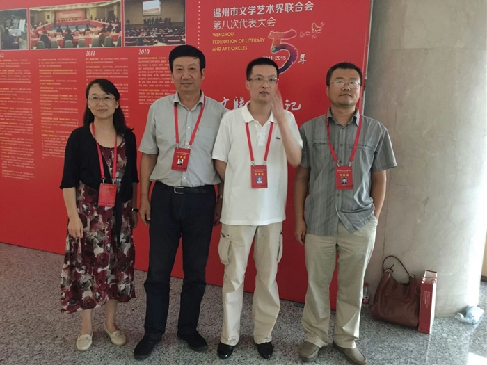 温州市文学艺术界联合会第八次代表大会于9月27日至29日在市人民大会堂隆重举行。我院人文传播系田正、金丹霞、孟志军、朱乾四位教师参加了会议。他们分别作为电影家协会、电视艺术家协会、网络作家协会及特邀代表,与来自全市各地的500多名文艺家和文艺工作者,共商温州文艺事业繁荣发展大计。 经过大会选举,金丹霞、朱乾两位老师被选为温州市文学艺术界联合会第八届委员会委员。