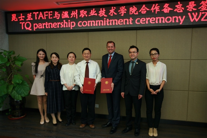 10月12日下午,我院与澳大利亚昆士兰TAFE合作备忘录签约仪式在研创大楼三楼会议室举行。昆士兰TAFE首席运营官Michael Thomas先生、我院院长谢志远等领导出席了签约仪式。