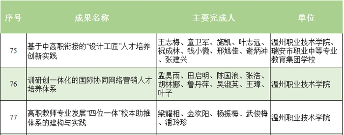 日前,2016年浙江省教学成果奖评选推荐工作圆满结束,460项教学成果荣获“2016年浙江省教学成果奖”。其中,高等教育教学成果奖一等奖100项、二等奖150项。我院《基于中高职衔接的“设计工匠”人才培养创新实践》、《训研创一体化的国际协同网络营销人才培养体系》、《高职教师专业发展“四位一体”校本助推体系的建构与实践》三项成果全部荣获一等奖。