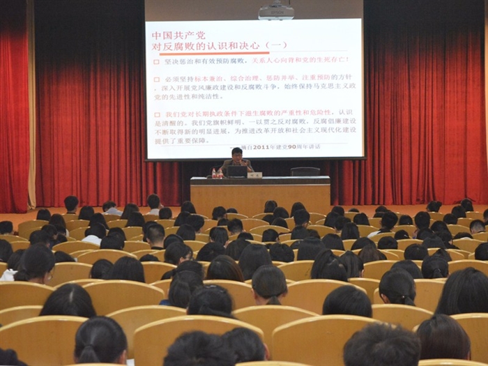 讲座首先围绕 “为什么要上大学、如何上好大学、科学发展观、和谐观念”等与学生生活密切相关的话题展开探讨。随后,讲解了腐败的定义及表现、对个人的危害、中国共产党对反腐败工作的决心、十八大反腐倡廉的现状、新常态和面临的斗争形势及采取的新举措。讲座还风趣幽默地盘点了十八大以来被打掉的19只“老虎”,加深了同学们对反腐败工作的认识。