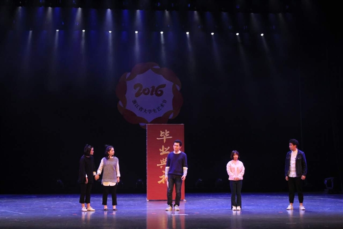 据悉,浙江省大学生艺术节每年举办一届,是我省目前规格最高、规模最大、影响最广的大学生艺术盛会。自今年3月初,我院大学生艺术团积极筹备节目,从剧本的选择、戏剧表演、灯光控制、音效制作、舞美道具等方面都进行了精心的准备。此次大赛充分展示了我院学子向真、向善、向美、向上的青春风采及我院大学生艺术文化建设的成效。