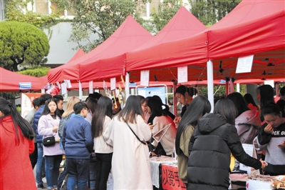 扫个店铺二维码就发个红包,关注一下赠送神秘小礼品,首次下单有优惠……12月3日的温州职业技术学院的校园里人群熙攘,热闹非凡,俨然成了现代集市,该院传承了18年的大学生商品展销会开幕,成了该校首届创新创业文化节的一大亮点。校园里的“小老板”用创新点子、创业精神演绎着一个个“做生意”的故事。