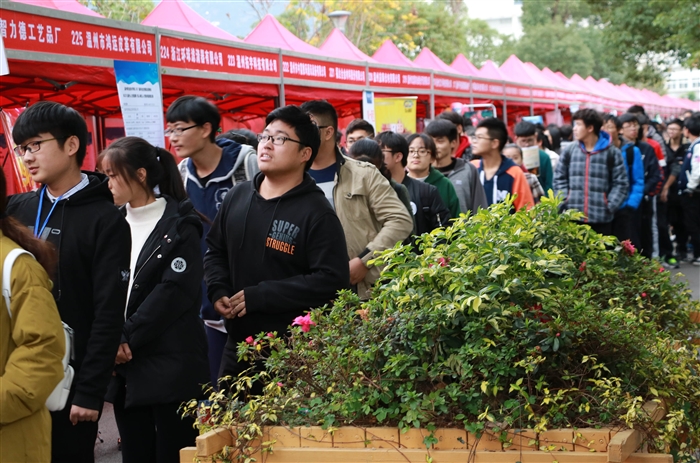 本次招聘会呈现一个“首次”和“三个最多”的特点——在了解企业用工和学生求职两方面的需求基础上,每个专业首次设置了来校招聘企业岗位的具体要求,基本做到底薪有保障,五险(一金)、食宿等成“标配”,以此对招聘岗位进行分析比对和意向筛选以把好就业岗位的质量关。 “三个最多”分别是:招聘单位数和岗位数为历年最多,企业数达630余家,岗位数12000余个;优质企业和优质岗位为历年最多,据统计,本次招聘会的参会企业中,全国民营企业500强、上市公司和行业龙头企业达65家,占比10.3%;提供五险的企业占比大100%,提供五险一金的企业达93家,占比14.8%;涉及的地区为历年最多。