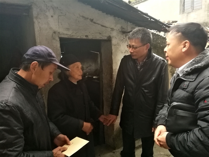 寒冬腊月送温暖,浓浓情意漾乡村。1月11日下午,学院党委副书记夏晓军,党委委员、宣传部长蔡后界等一行来到我院 “双千结对”单位——茶山街道山根村开展新春慰问活动,走访了老党员、贫困户,为他们送去慰问金,并致以亲切问候和新春祝福。一声声亲切的问候、一句句新年的祝福,为慰问对象带来了股股暖流。在一位老人家中,老人眼泛泪花,紧紧拉住夏晓军副书记的手表示感谢。