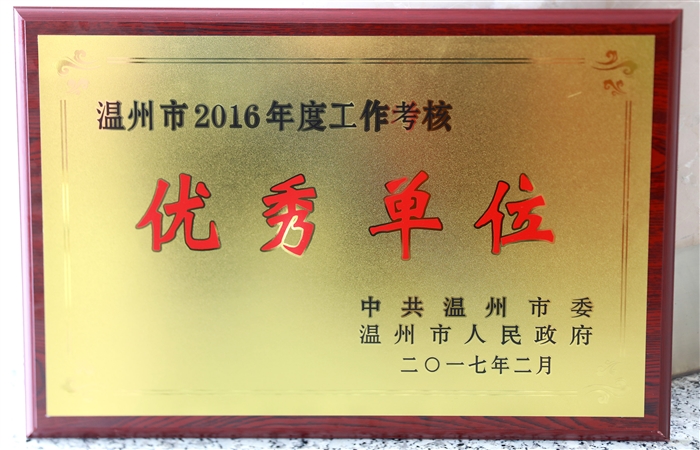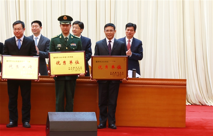 2月6日,在温州市作风建设暨考绩表彰大会上,我院被授予2016年度工作考核优秀单位,这是我院连续第六年被温州市委市政府评为年终考绩优秀单位。我院党委书记王靖高上台领奖,谢志远院长等学院领导参加了会议。
