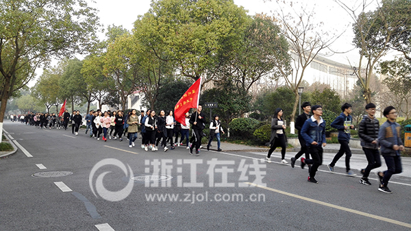 浙江在线温州2月22日讯(通讯员 姜瑜)近日,温州职业技术学院举行“阳光晨跑”活动,全院近万名学生在校园里欢乐开跑,场面煞是壮观。不少党总支书记、辅导员、任课老师都加入到晨跑队伍里,带领学生们“动”起来。
