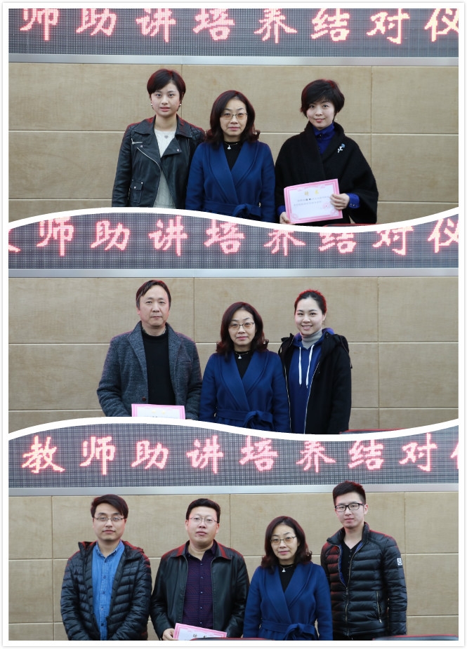 (人事处通讯员 张路伊) 为促进我院青年教师的快速成长,更快地胜任教育、教学等各个环节,提高课堂教学能力和实践技能,充分发挥学校骨干教师的帮扶作用,3月10日下午,我院在正德楼301会议室举行青年教师助讲培养结对仪式。副院长王向红参加了结对仪式。