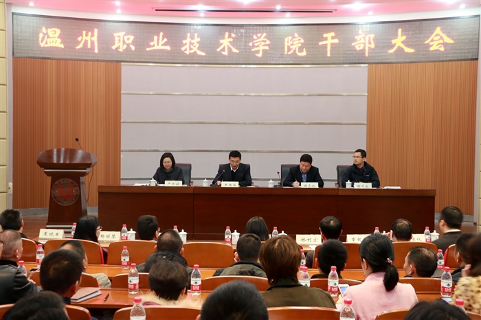 王靖高书记代表院领导班子作工作总结,其他院领导提交了书面述职述廉报告。五年来,在中共浙江省委、省教育工委、温州市委的正确领导下,学院坚持立德树人,坚持面向市场、服务发展、促进就业的办学方向,紧紧围绕省市中心工作和重大战略部署,精准对接发展需求、精心谋划教育教学改革、精耕细作提升服务能力,多项工作走在全省乃至全国前列,开创了学院工作新局面。王靖高书记从强化“四种意识”,班子自身建设呈现新风貌;实现“六个提升”,学院各项事业迈上新台阶;突出“六个着力”,党建思政工作开创新局面等三个方面全面总结了学院党委的工作成绩。他指出,学院党政班子强化学习意识提素质,强化协调意识增团结,强化实效意识促提高,强化勤政意识塑形象,成为推进学院科学发展的“铁军司令部”。王书记指出,五年来,学院以稳中求进为基调,综合实力显著提升;以内涵建设为支撑,人才培养质量显著提升;以教学改革为核心,教育教学质量显著提升;以科研创新为途径,服务能力显著提升;以师资队伍建设为基础,教师水平显著提升;以开放办学为抓手,国际交流显著提升。王书记强调,五年来,学院党委以改革创新精神,不断加强和改进党建与思想政治工作,为学院改革发展提供了坚强保证。着力把握正确导向,党委核心作用进一步发挥;着力优化干部队伍,选人用人满意度进一步提高;着力筑牢战斗堡垒,基层党组织建设进一步加强;着力深化思政教育,文化建设魅力进一步彰显;着力党风廉政建设,风清气正氛围进一步形成;着力完善管理与服务,和谐校园建设进一步推进。
