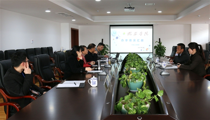 (瑞安学院通讯员 蔡帆帆)3月29日,温州市科学技术局人事处处长杜晓敏一行到瑞安学院调研并举行座谈会,学院副院长王志梅热情接待了调研组。学院资产管理处、瑞安学院负责人,瑞安市中泰科技设备有限公司总经理周育平参加了座谈会。