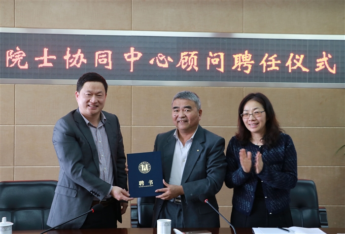 在聘任仪式上,王向红副院长介绍了我院创建浙南轻工装备智能技术协同创新中心的历程及取得的成果、今后的发展思路和方向。谭建荣院士对世界职业教育发展做了简单评述,并表示将和温州职业技术学院联手合作,为推动学校协同创新中心建设、人才培养和科研等工作而努力。