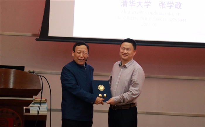 (人事处通讯员 张路伊)4月26、27日两天下午,清华大学机械工程学院教授、清华大学校聘教学顾问组专家、国家级精品课主讲教师张学政教授受邀来我院作两场主题报告——《做国家和人民满意的人民教师——谈教师师德和素养、教学方法与艺术》。学院院长谢志远、副院长王向红出席报告会。谢志远院长聘请张学政教授为我院“客座教授”。