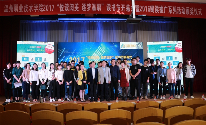 (图书馆通讯员 王品 刘凤)由院图书馆主办、院团委协办的2017“悦读阅美 逐梦温职”读书节开幕式暨2016阅读推广系列活动颁奖典礼于4月26日下午在树人堂隆重举行。党委书记王靖高、副院长王向红出席了开幕式。各系党总支书记,院团委副书记,学院图工委委员,各系图书信息联络员、教师代表,图书馆全体成员以及各系学生代表共500余人参加了仪式。