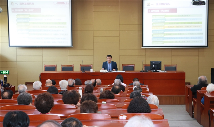 4月28日上午,我院在成教学院大礼堂举行形势报告会,党委书记王靖高向离退休老领导、老同志报告近年来的温州经济社会发展情况,以及学院的发展情况和今后发展的基本思路。