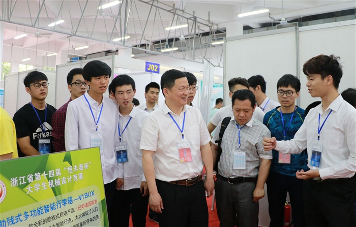 5月27日上午,浙江省第十四届大学生机械创新设计竞赛在温州职业技术学院体育馆举行。本届设计竞赛由浙江省大学生科技竞赛委员会主办,浙江工业大学、温州职业技术学院和浙江省机械工程学会承办。竞赛的主题为“健康、幸福、快乐”;内容为“服务于人的机械装置的设计与制作,机械装置工作过程中,人必须是被动的服务对象,机械装置可以是康复机械、助残机械、娱乐机械等。