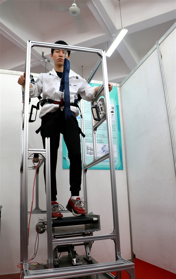 作为此次比赛的东道主,温州职业技术学院有六支队伍进入决赛。已经第二次参加该项赛事、曾在全国“创青春”大赛上获奖的“校园小发明家”、我院大三学生陈寅灿同学设计研发的“洗擦按一体卫浴机”,为老年人带来了“福音”。该机器可集清洗、揉搓、擦干、按摩于一体,只要轻轻一按按键,旋转喷头能够在轨道内进行移动,实现对人旋转喷淋与旋转揉搓。洗完之后,这个机器还能自动进行按摩和擦拭。很多专家现场看了之后赞叹机械设计的巧妙。